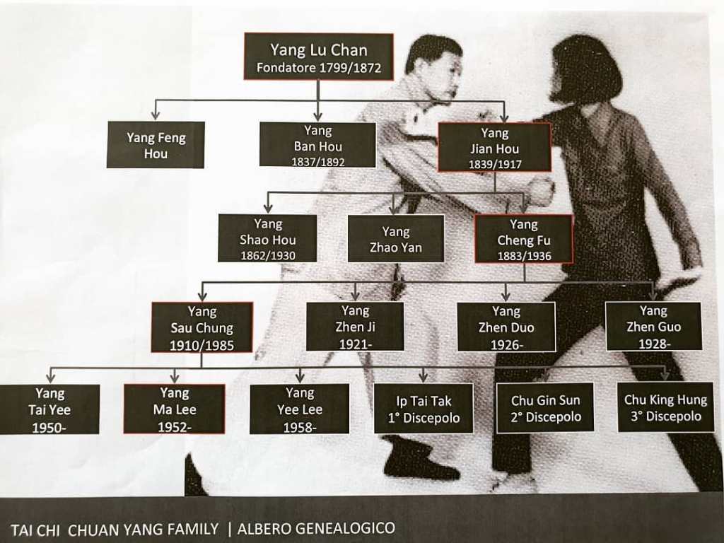 Ecco perché sotto il nome generico “Yang” rientrano stili che differiscono tra loro, in base alle linee ramificate dei diversi allievi. Per questo distinguiamo lo stile “Yang”, che segue una linea da maestro ad allievo, da quello della “famiglia Yang”, che studiamo noi, che segue la linea di sangue.